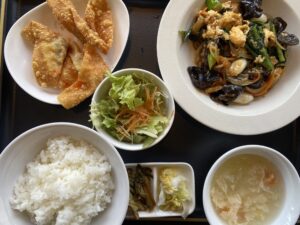 キクラゲと卵炒めと揚げワンタン!